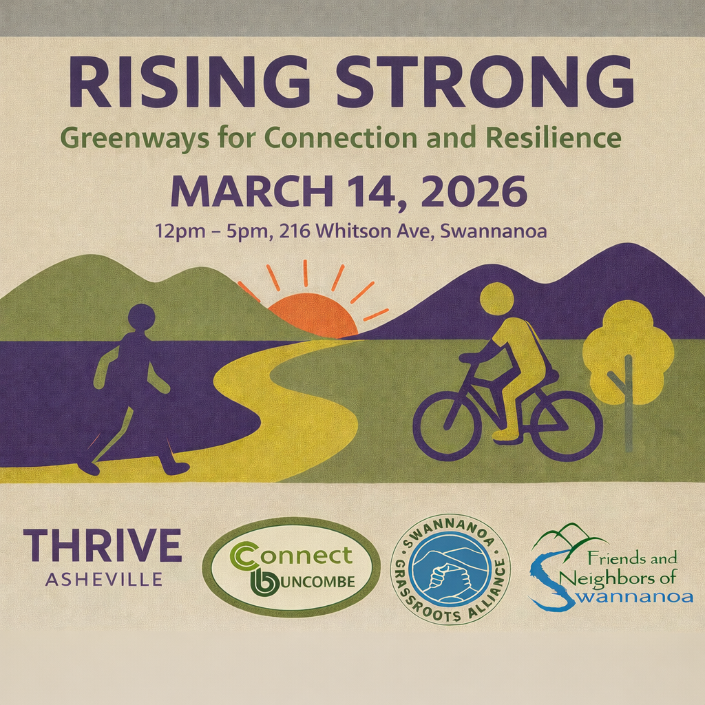 This year, we turn our attention to the more distant horizon and consider not what was, but what can be if we work together for a more resilient community. Community-level resilience strengthens our community by fostering long-term health, connectedness, and preparedness. Please join us for the first in our Lessons for Resilience series. We will welcome leaders from WNC to learn how greenways make us safer by reducing the impacts of flooding; how greenways create community connection, and promote economic growth and activity; and, the opportunity to join communities from Morganton to Asheville as part of the North Carolina Trail system. Register HERE for the RISING STRONG event.